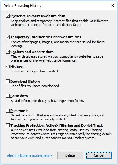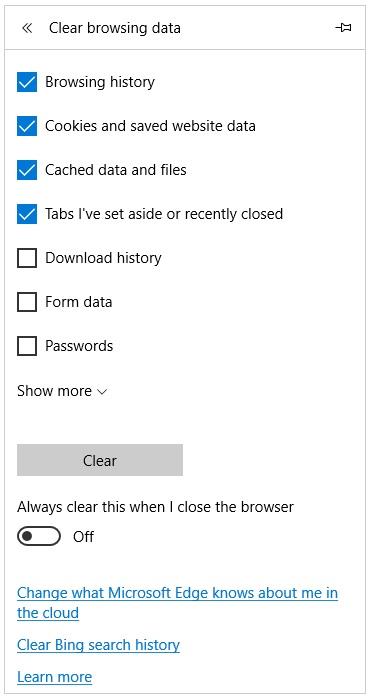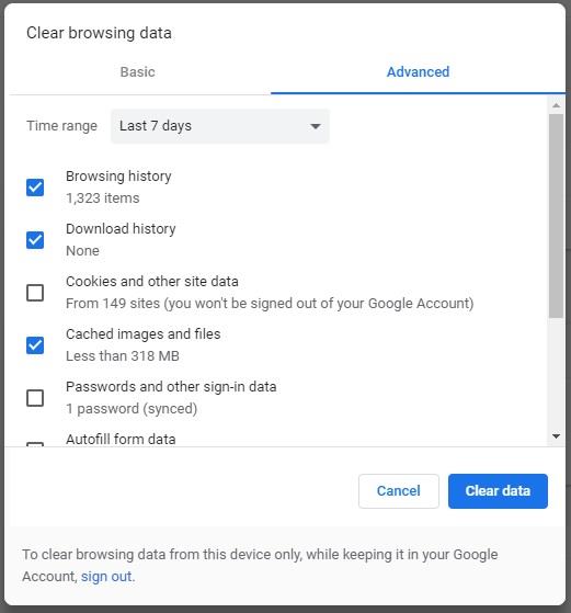 3. ‘Çerezler ve diğer site verileri’ onay kutusunu seçin.